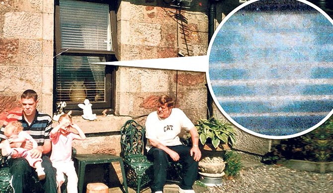 英國《太陽報》報導,64歲的亨利羅斯(Harry Ross)和26歲的兒子、兩個孫女(一個5歲、一個2歲)在院子拍了一張家居生活照,這張照片裡的四個「人」都沒有看鏡頭,表現得非常「自然」;但唯一「不自然」的是,屋子裡竟然有個「鬼」透過百葉窗盯著鏡頭!
