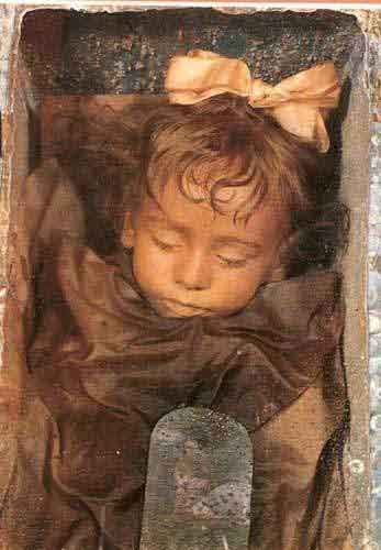 Sleeping Beauty與木乃伊?相信不少人乍聽之下很難將睡美人與木乃伊兩種與人截然不同觀感的人物聯想在一起,然而,最近流傳的一封電子郵件指出,在義大利西西里島的Palermo地區就有著這麼一個被喚為Sleeping Beauty的木乃伊,她,是位約2歲的小女孩,有著洋娃娃般可愛漂亮的臉孔。(圖/電子郵件上流傳的「世上最美的木乃伊」)