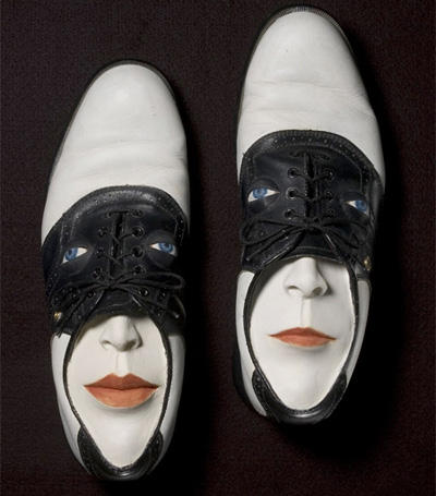 將鞋子擺上人臉之後~就像是人帶著面具一樣-人臉鞋,有許許多多不一樣的風格~加上又可以將表情做各式各樣的變化,所以看似簡單的人臉鞋~其實一點都不簡單!