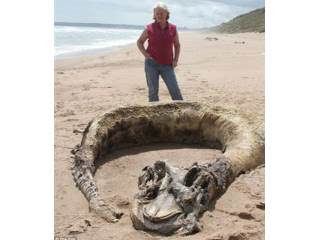 這具「海怪」的異形遺骸,異形遺骸長約30英呎(約9公尺),異形遺骸蜷縮著躺在沙灘上。「異形遺骸」頭、尾和牙齒都清晰可見。研究過這些「異形遺骸」照片後,有專家說異形遺骸可能是鯨魚的遺骸。」