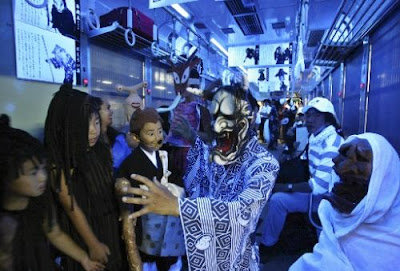 您能想像搭電車時,妖怪就坐在旁邊的景象嗎?陰森的妖怪電車,每年夏季在京都的街上行駛,歡迎大膽的人前來挑戰妖怪電車。不知情的小朋友一上妖怪電車,立刻被妖怪嚇得嚎啕大哭。
