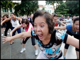最近興起一種「大笑瑜珈」,在瑜伽大師Le Anh Son的教導下,河內市中心的公園內每天聚集上百位的人潮,進行「大笑瑜伽」。
