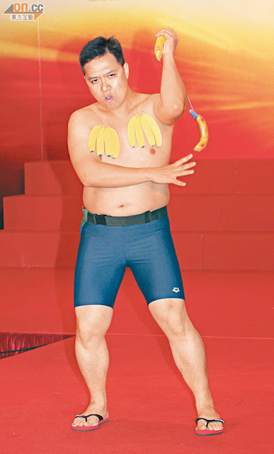 今 年亦有不少騎呢人士勇於參戰,其中以「震波阿叔」鄧簡文奇「蕉」突出最嚇人。他以兩條香蕉當雙截棍來舞,更以兩梳假蕉遮住胸前兩點。他對評判 說:「這個 『I蕉Six』,是專登為參加亞洲先生而設計的道具。」33歲的吳華星現出「地中海」,除了擺出丁字腳外,又叉腰突肚腩,狀甚搞笑。11號董 鵬面對評判時 咪起眼想放電,更一度「反白眼」,難怪楊玉梅笑言以為他眼發炎。