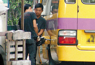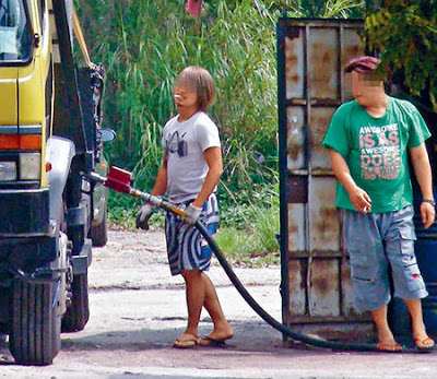 鬼油站除威脅市民和學生,香港仔一間更與警署相距只有十米之 遙,同時又緊貼工廈和新巴車廠,不時有客貨車等「搵食車」到場,竟有工人在路邊替客貨車加油,路過的巡警也當視而不見。