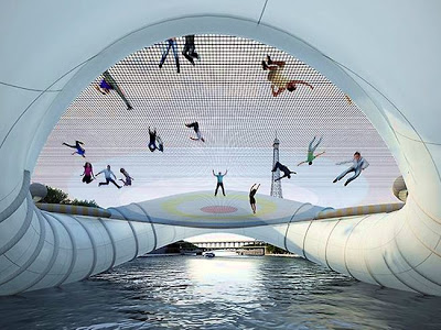 據英國《每日郵報》報導,巴黎彈床橋這 項點子是由法國建築公司AZC發想,將來民眾往返塞納河(Seine)兩岸,除了利用原有的橋樑外,也可以嘗試一下在巴黎彈床橋蹦 蹦跳跳過橋,享受飛越半空的樂趣,巴黎彈床橋設 計的公司表 示,「設計這套獨特的巴黎彈床橋, 希望民眾能在彈跳過程中,享受從地心引力獲得釋放的樂趣。」