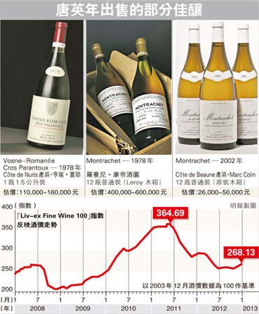唐英年出售的葡萄酒主要是法國勃艮第(Burgundy)名釀,佳士得指出,該行首次推出單一亞洲重要藏家的私人窖藏專場拍賣,並取名「尋 味之旅:唐英年窖藏珍釀」。