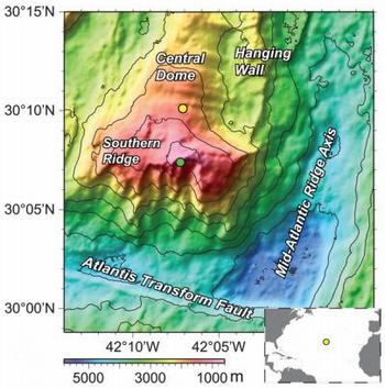 海洋地底一般由三層組成,一是淺層沉積層,二是由岩漿固化的玄武岩層(basalt),第三是更深層冷卻較慢的岩漿所形成的玄武岩,被稱為輝長岩層(gabbro layer),是形成海洋地殼的主要形式。 輝長岩層在地殼下2英里處。但因為地殼上升和斷層作用,造成亞特蘭蒂斯地塊露出,因此研究人員能夠取得輝長岩層形成的核心樣本,並得以調查這些岩石的微生物學現象。 這個深海地殼生物活動的研究,19日發表在「PLoS One」期刊。