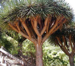 龍血樹生長很緩慢,一年之內樹幹增粗還不到1厘米,但在植物界中它的生命期最長,可達八千年,因此被植物學家們譽之爲“植物壽星”。龍血樹是 一種熱帶常綠喬木,樹皮一旦被割破,便會流出殷紅的汁液,象人體的鮮血一樣,因此而得名。它大多分布于海拔較高的石灰岩地區,高可達20米,樹幹粗短,樹 皮縱裂,顯得老態龍鍾,但枝、葉却十分繁茂,墨綠色的帶狀葉片集中輪生于枝頂,青翠欲滴,生機勃勃,整個樹冠非常美麗,在許多旅游區、賓館、酒店都可以見 到供人們觀賞的龍血樹。目前,龍血樹已是珍稀植物,受到了國家的重點保護。