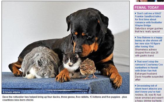 英國 最博愛 狗褓姆 救 動物 - 戴夫對兔子的「褓姆行為」並不是唯一一次案例